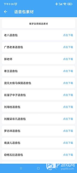 2、语音包可以看到有老八语音包、广西老表语音包、混元太极马保国语音包、罗志祥语音包等等;
