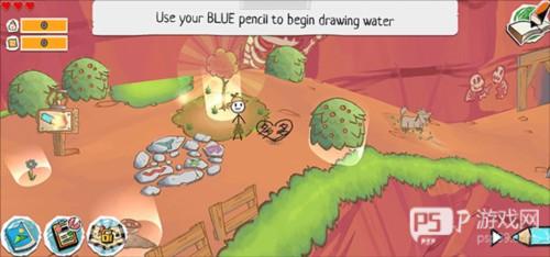过去后到达山上,会发现一个电线杆,在上面画乌云,画浓一点,闪电会大一点,通电后会激活一个机器人,机器人好搞笑的,跟着他就会有路啦!顺着路向左上角前进,就可以。
