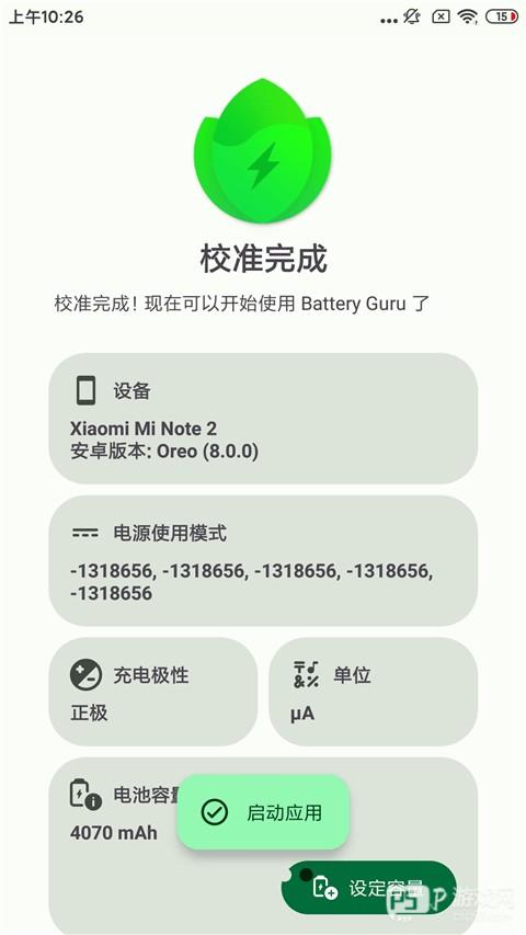 校准完成后,会显示电池的一些基本信息,点击启动应用。