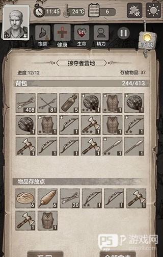 掠夺者营地很肥务必推掉,时间很充裕可以一天推一点。本关结关需要活18天,打完所有点之后每天就是找威利换石片,然后隔几天走一遍资源点。如果觉得食物压力大,请在推完营地后给二号人物断粮