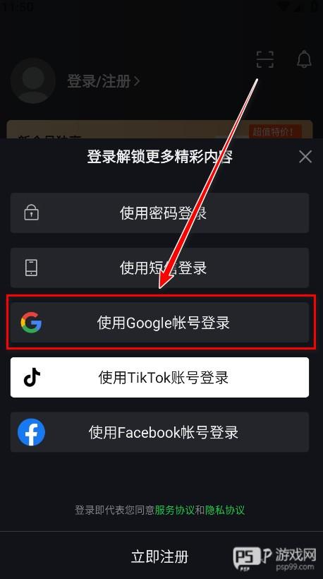 3.如下图所示,有很多种账号模式,大家可以根据自己的实际情况,比如小编点击使用Google账号登录。