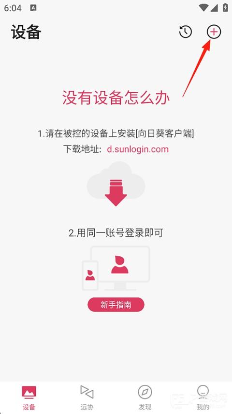 1、打开向日葵远程控制手机版,在首页点击右上角的+图标;