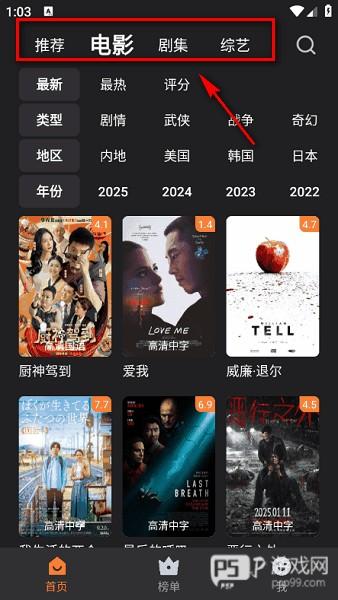 4、在分类里面可以筛选影片,有类型、地区、评分、热度,可以找喜欢看的类型。