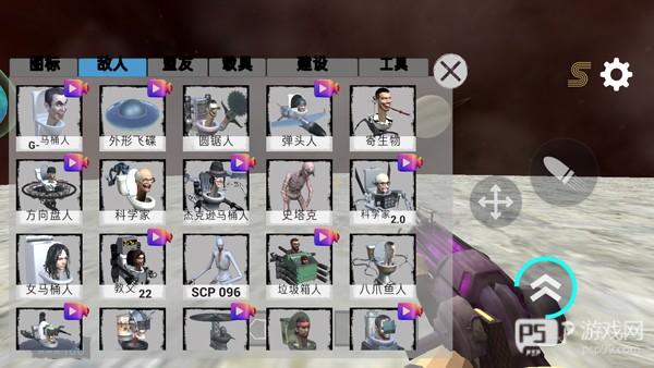 3、点击左侧箱子按钮,玩家可选择要添加的敌人,如马桶人、圆锯人、弹头人、寄生物、外星飞碟等;