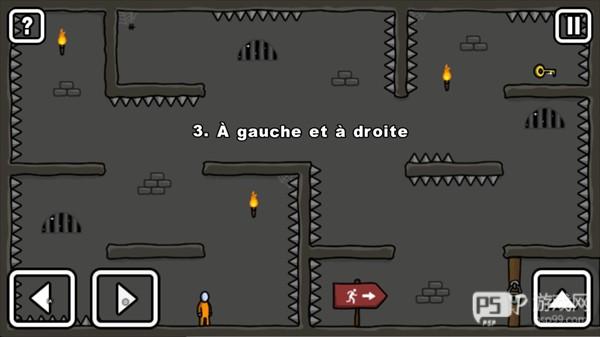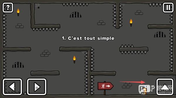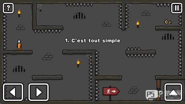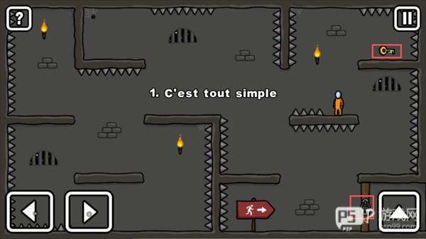 在第1关「C'esttoutsimple」中,玩家需要操控火柴人成功获取钥匙并打开出口大门,同时注意躲避沿途的尖刺陷阱,确保自身安全。