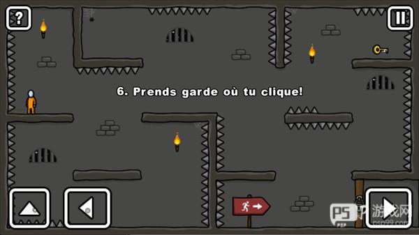 第6关「Prendsgardeoùtuclique!」属于典型的陷阱关卡,玩家需要谨慎点击屏幕,避免误触隐藏机关或致命陷阱。游戏中的每一关都拥有独特的规则与挑战,考验玩家的观察力与判断力。