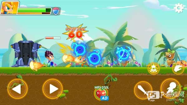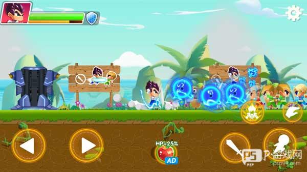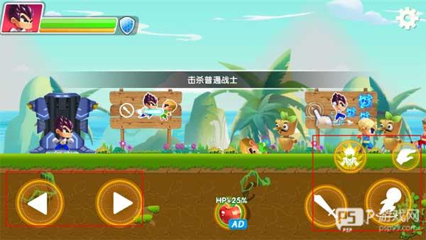 1、游戏的开始玩家先控制贝塔去击杀普通战士,通过左右控制角色前进的方向,用右边的技能键将战士杀死。