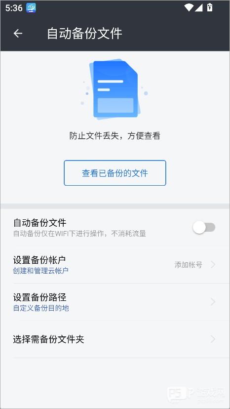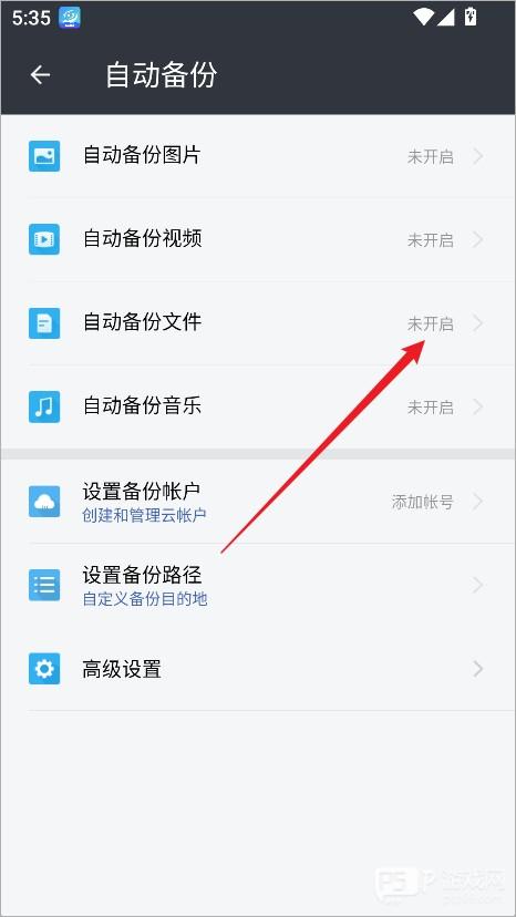 4、将开关开启,即可让文件自动备份(默认关闭)。
