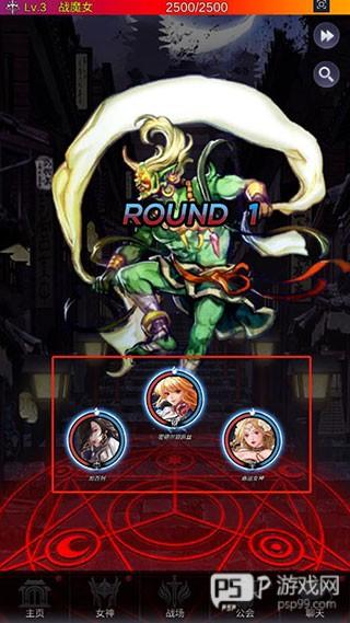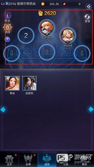 2、进入之后在下面则是你拥有的女神队伍,游戏一大优势就可以放置挂机进行战斗,因此玩家只要选择好女神就可以让她们自己进行打斗;