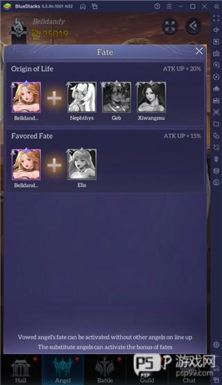 要了解天使的命运,请转到“天使”选项卡,从您拥有的列表中选择“天使”,然后单击最中间的图标——它应该是一个类似于两颗钻石的图标。