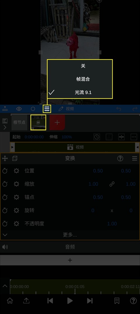 3、打开补帧功能后,还需要通过放慢视频速度来看到效果;