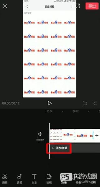 3、选择添加音频,点击左下角的“音乐”,选择导入音乐,点击“本地音乐”,上滑选择音乐,点击“使用”。
