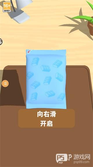 3、手指向右滑动,撕开零件包,倒出零件;