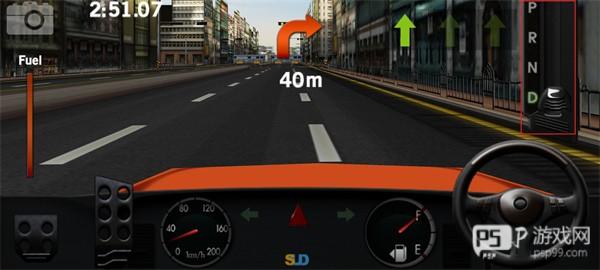 右上角显示的是赛车的【档位】。例如,将档位调至R档,则会启动倒车功能,屏幕上也会显示后视镜画面,帮助你顺利倒车。