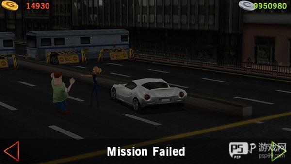 如果未能及时调整方向盘,可能会导致【交通事故】,这时游戏将结束。你可以点击左侧箭头返回主界面,或点击右侧箭头继续挑战。