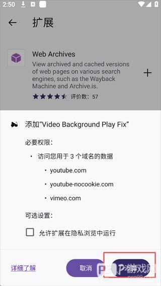 3、在弹出的权限确认窗口中,点击添加完成安装。