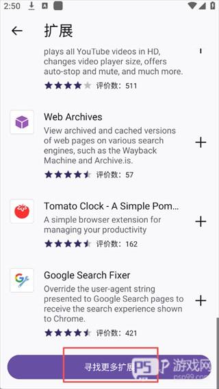 5、点击页面底部的寻找更多扩展,可以找到更多插件。