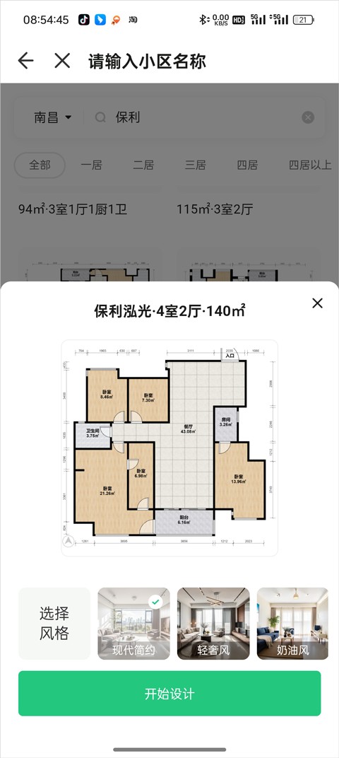 5、确认户型后,点击【开始设计】,系统会调用AI快速生成装修方案。