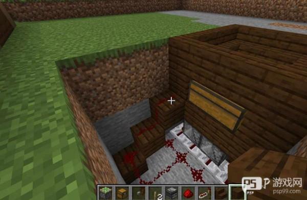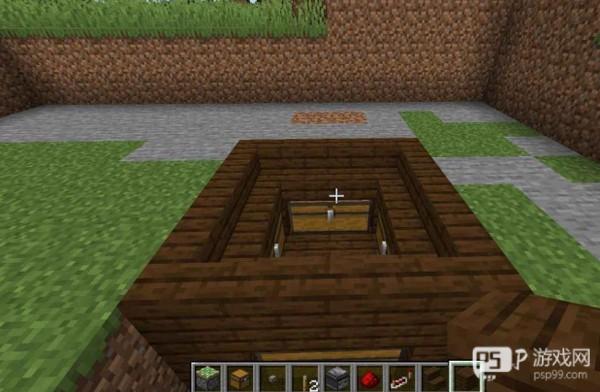 6、最后我们再铺放木板进行隐藏,再摆好1个按钮就做好我们的地板机关啦!