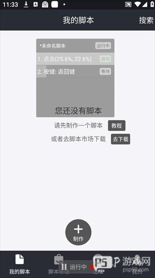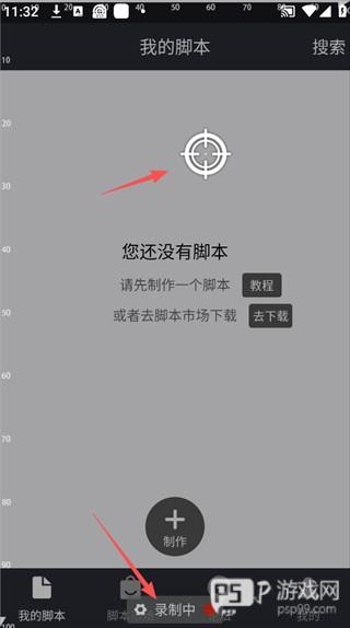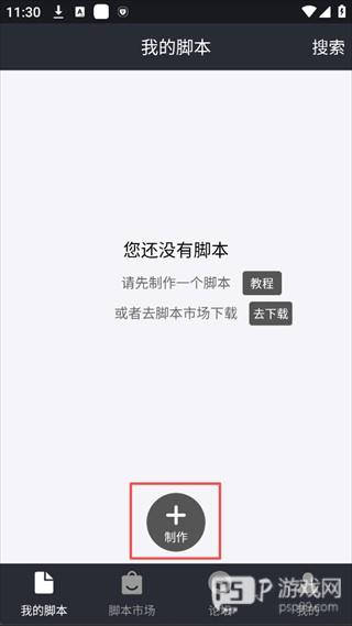 1、打开自动精灵免费脚本App,进入「我的脚本」,点击底部「制作」按钮,开始创建新脚本。