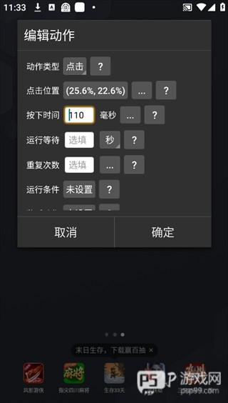 3、录制完成后,可进入「编辑动作」界面,自定义点击位置、按下时长、运行等待、重复次数等参数,精细化调整脚本。