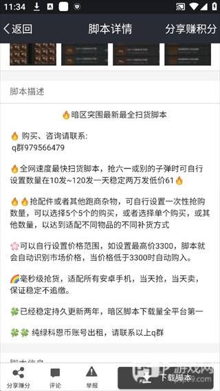2、点击目标脚本进入详情页,查看脚本功能介绍后,点击「下载脚本」,即可将现成脚本导入到自己的「我的脚本」中运行。