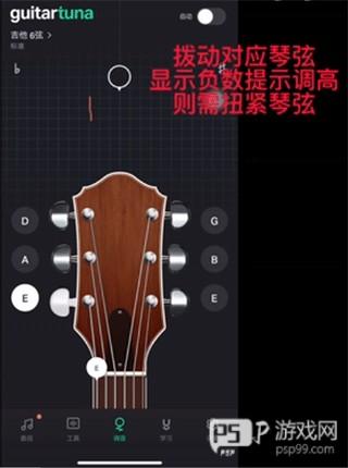 2、拨动对应的琴弦,显示负数提示调高,需要扭紧琴弦