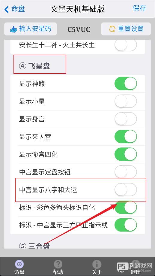 2、然后往下滑,找到飞行盘,将八字和大运显示开关开启即可