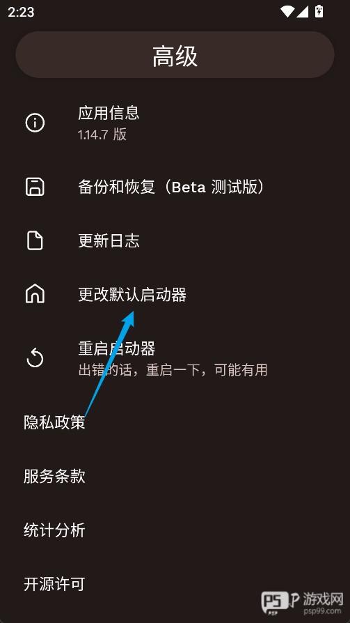 4、选择更改默认启动器