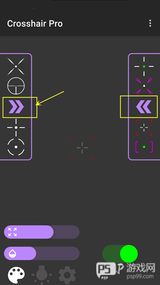 3、当然软件内的准星类型远不止展示的这些,可以点击下图所示的箭头按钮查看更多的准星类型。