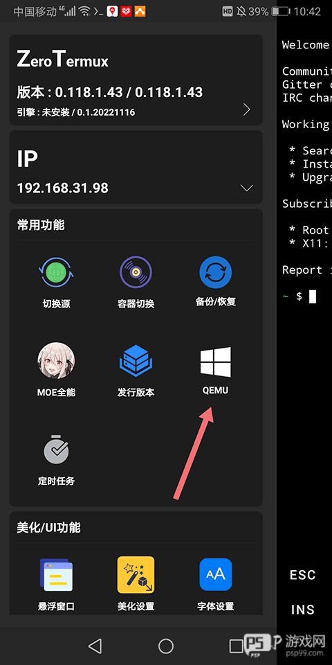 1、等待软件启动后右滑界面点击里面的【QEMU】