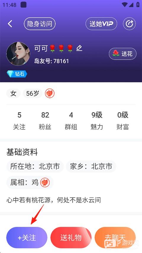 4、进入ta的个人主页,点击关注即可。