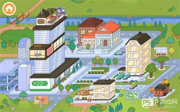 1、进入游戏后,我们首先可以看到自己所在的街道,最高的大楼是商业用楼,里面有很多办公室,远处是学校,近处是自己的家,在右侧还有一栋居民楼和修理厂等。