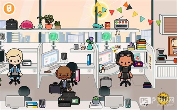 2、我们随便点击一个大楼即可进入其中,例如我们选择商业用楼,进来后发现里面是一间办公室,可以看到很多办公用品,还有很多工作的人员。