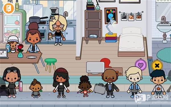 5、又或者点击左上角的退出房间按钮,去到自己的家中,可以看到也有很多小朋友,点击任何人物或者物品都可以移动。