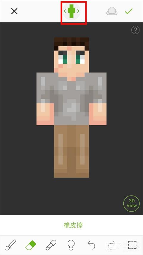 6、下面的功能都比较简单,画笔、橡皮擦等等,最后一个小功能提一下,可以复制粘贴我们所做的皮肤,以及垂直翻转和镜像翻转等,都比较的简单和平时编辑图片差不多;