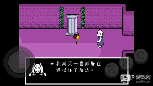 5、随后Toriel表示自己要离开一会儿,需要你独自一人往前走,这时候只需要直接往前走即可。其实Toriel就躲在出口的柱子后,她想要测试一下你的信任程度。随后她留下一个电话,并且表示你不要随便走动,如果有问题可以打电话给她,这时候可以打电话给Toriel打招呼、询问自己的状况、称其为“母亲”、联络感情。