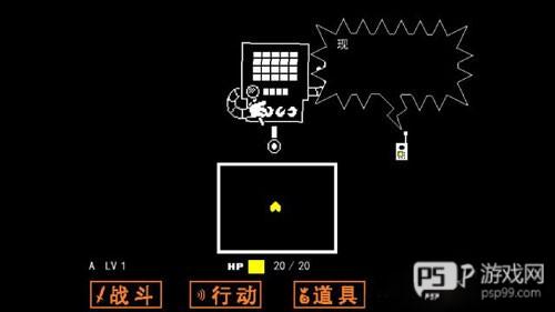 mettaton的第一形态会作为你的对手,行动只需要先选择“大叫”,然后alphys博士打电话提醒你,你可以有一个攻击形态。