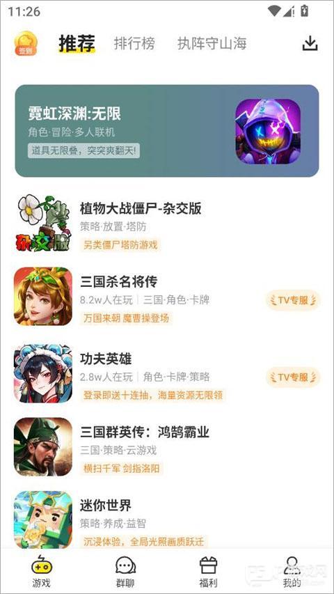 1、本站下载打开小y游戏盒,在首页“游戏”板块,可以看到大量热门、新游推荐。