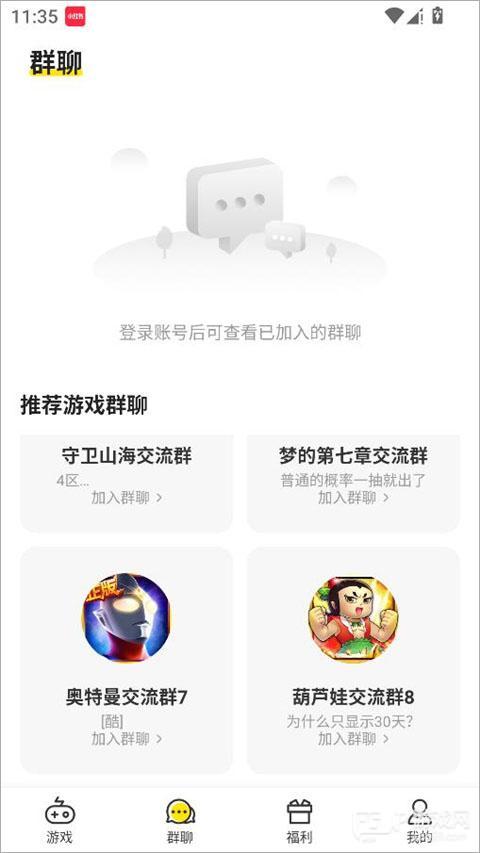3、进入群聊板块,根据自己玩的游戏,搜索或浏览感兴趣的群,点击申请加入即可。