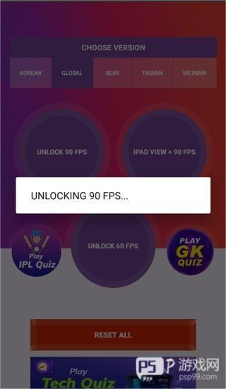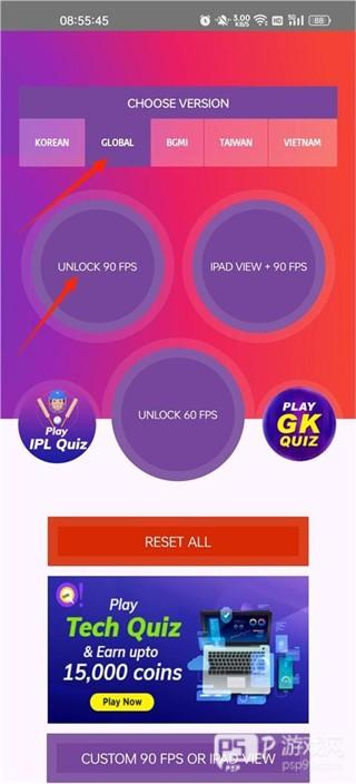 1、打开软件,选择全局模式GLOBAL,再点击解锁90帧模式;