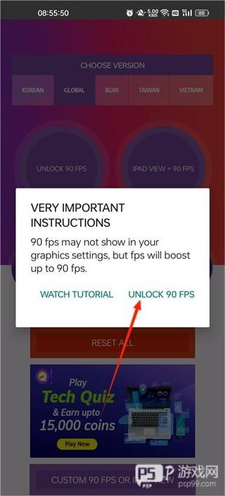 2、这个时候软件会弹窗提醒是否解锁90帧,选择确认;