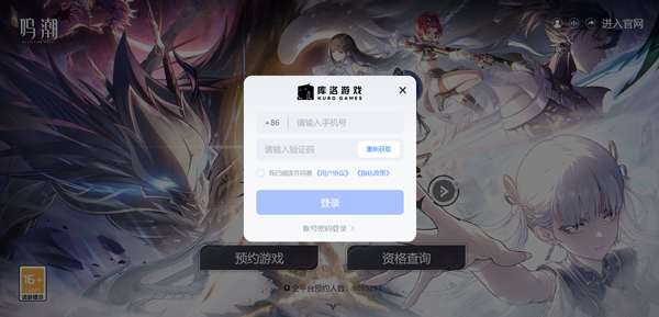 1、打开鸣潮app:https://mc.kurogame.com/,点击资格查询;