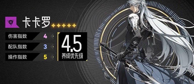 三测中卡卡罗理论伤害全游第一,对单远超同练度的忌炎,同时由于卡卡罗的攻击前后摇较长相比其他角色更难把握输出时机,想要把他的伤害打满对操作的需求非常高。但正因如此,卡海罗在5星角色中过于出彩同时上下限差距过大,可能会在公测时有所调整。卡卡罗的打法没有固定套路根据输出环境不同需要玩家有所调整。