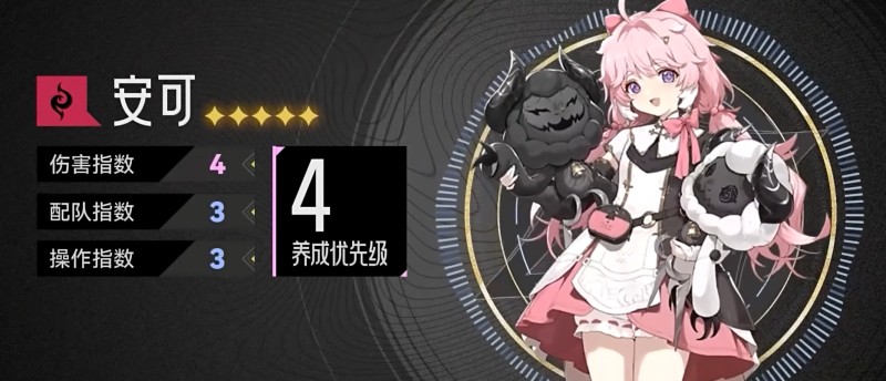 常驻池的可爱少女,半远程半近战热熔属性的输出c,与黑白羊咩玩偶为伴的女孩能拥有可爱的粉红头发与蝴蝶结。