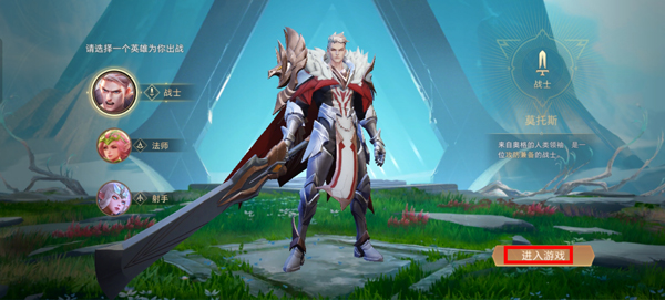 4、进入游戏之后,要在三种英雄中选择你喜欢的,选择之后点击进入游戏,然后就注册完毕了。