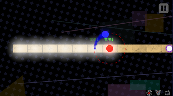 3、点击控制球进入右边的圆圈一开始会有点困难按下它以跟上音乐的节奏每次点击重音控制球直线前进。快半拍是向上或向下。