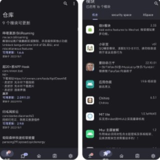 4、即时模块列表,不用重启手机,直接重启软件即可。