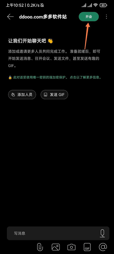 3、点击右上角的开会