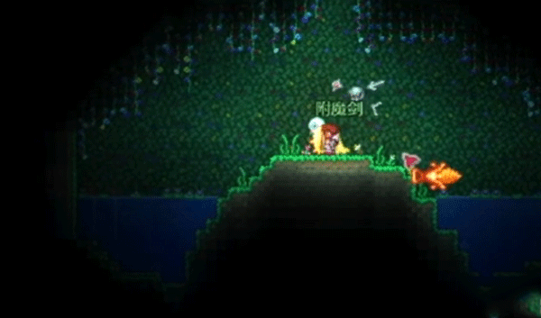 3、附魔剑就在这个坑的底部了,只要看到这个平台就能够看到附魔剑了。